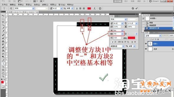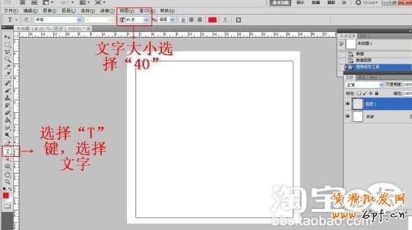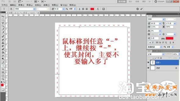 6、選擇橫排文字工具 字體大小選擇40 (如果您希望螞蟻線比較密點(diǎn),那就選擇比40小點(diǎn)的數(shù)值就可以了)