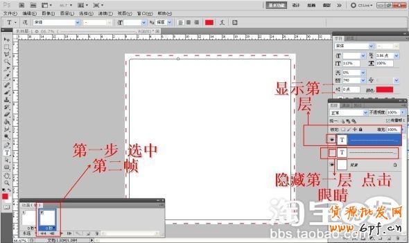 19、在選中第二幀的情況下,關(guān)閉第一層上的眼鏡標(biāo)志,點(diǎn)亮第二層上的眼鏡標(biāo)志.簡(jiǎn)單吧,動(dòng)畫(huà)已經(jīng)制作完成了,呵呵 ,鼓個(gè)掌,慶祝一下。現(xiàn)在開(kāi)始插入自己的寶貝圖片,保存動(dòng)畫(huà)了