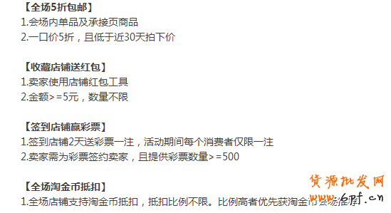 此外,淘寶女裝還介紹了四種玩法,全場5折包郵、收藏店鋪送紅包、簽到店鋪贏彩票和全場淘金幣抵扣,這和淘寶全網雙11玩法基本相同。