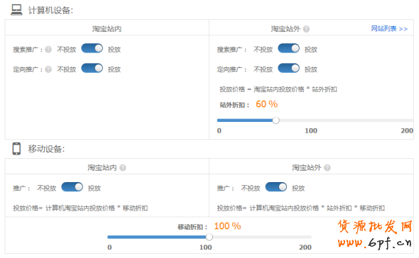 ① 單獨(dú)測試PC端與移動端淘寶站內(nèi)互聯(lián)策略。關(guān)閉PC端與移動端淘寶站外,加大移動端推廣力度,可降低PC端寶貝關(guān)鍵詞出價,通過提高移動折扣的形式來調(diào)整權(quán)重。