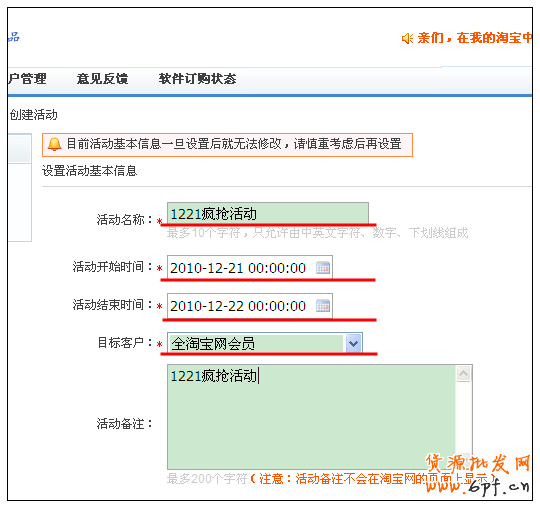 再次提示,一旦提交后,活動名稱與時間就不能修改了哦,如果真的填錯了,可以選擇重新創(chuàng)建一個活動,重新設(shè)置。