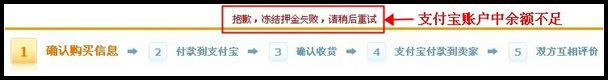 第三步:若您的支付寶賬戶中沒有足夠的余額支付拍賣保證金,購買信息頁面上方會出現(xiàn)報(bào)錯提示(見圖一),點(diǎn)此查看如何給支付寶賬戶充值;