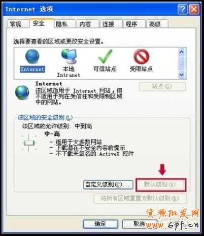 第二步:仍然是瀏覽器菜單欄上的“工具”—“Internet選項(xiàng)”—“安全”頁面,分別選擇“本地Internet / 受信任的站點(diǎn) / 受限制的站點(diǎn)”這三項(xiàng),做如上操作。