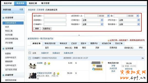 當(dāng)前位置: 貨源批發(fā)網(wǎng) » 網(wǎng)商學(xué)院 » 開(kāi)店基礎(chǔ) » 如何開(kāi)網(wǎng)店 » 如何知道有人購(gòu)買我的商品?如何查詢已賣出寶貝的訂單?