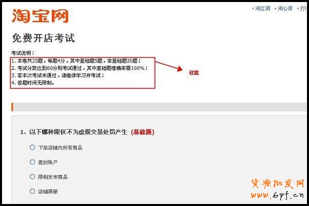 1、進(jìn)入“我的淘寶”點(diǎn)擊“我要開店”—“參加考試”,如下圖所示: