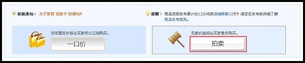 注意:商品發(fā)布以后,發(fā)布方式不能相互轉(zhuǎn)換,如無法將一口價修改成拍賣。