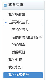 買家進(jìn)入“我的淘寶”,在右上方有個“我是買家”欄,在這里就可以找到“我的優(yōu)惠卡券”。點擊它,就可以看到我所持有的店鋪優(yōu)惠券了。