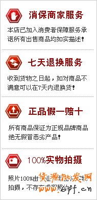 一款適合淘寶消保賣家使用的消保圖片標(biāo)志,包括七天退換服務(wù) 正品假一賠十 100%實(shí)物拍攝 這個(gè)圖片可以放在你店鋪的左側(cè)自定義模塊或者寶貝分類欄里。
