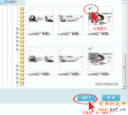 4、在列表里找到本地電腦上的廣告圖片,并勾選,點(diǎn)“選好了”:
