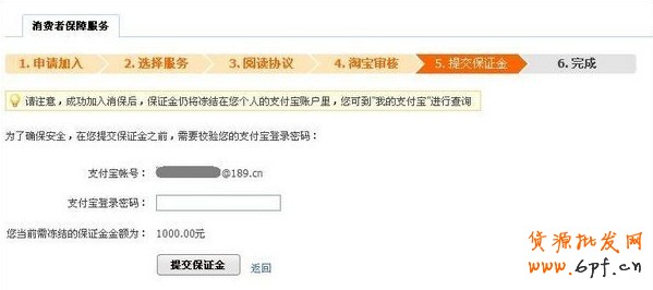 5、一旦您的審核被通過,您就可以在“我的淘寶”-“消費者保障服務(wù)”中看到“提交保證金”這樣的提示: