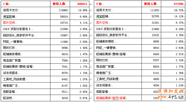 不同層級的賣家需求的服務是不一樣的,下文中把每個層級最受歡迎的20個服務羅列了出來。當然,是否采用工具就看各位所處的行業(yè)和店鋪的實際情況。