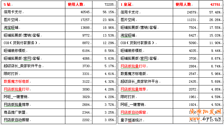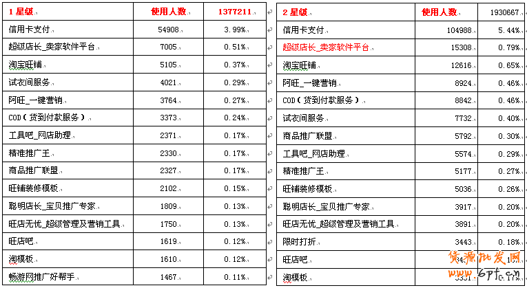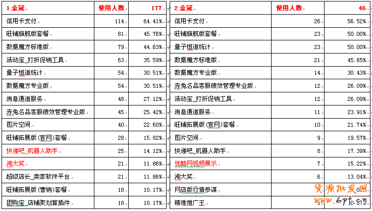 同時因為信譽等級越高,賣家基數(shù)越少,想對應的工具也較少,所以在工具采用比率上會比較高。