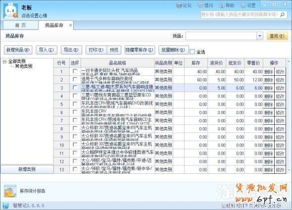 在處理這類問題時(shí)往往都使用著功能強(qiáng)大的管理軟件,當(dāng)然這類軟件的價(jià)格也不是一個(gè)淘寶店所能錄承擔(dān)的。但只要用心上網(wǎng)找一下,還是可以找到一些免費(fèi)好用的軟件的,如我在”淘寶賣家服務(wù)“找的”智慧記“,就是一款適合淘寶店鋪進(jìn)銷存管理的軟件,智慧記不僅能統(tǒng)計(jì)記錄進(jìn)銷存,還能同步下載店鋪上的寶貝數(shù)據(jù),省了大部分的數(shù)據(jù)錄入的工作,十分的方便。