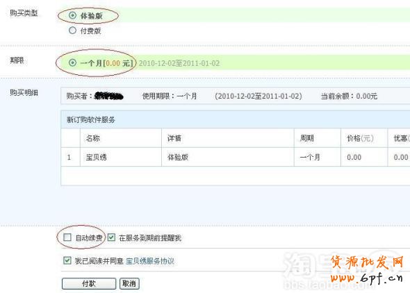 進(jìn)入軟件頁面,點(diǎn)擊立即使用,新手賣家建議選擇體驗(yàn)版的(免費(fèi)一個(gè)月哦),并將“自動續(xù)費(fèi)”多選框刪掉,勾選同意協(xié)議,進(jìn)入頁面如圖,點(diǎn)擊“付款”,因?yàn)槟x擇的是體驗(yàn)版,大可放心,一分錢也不會扣您的,訂購成功后您就可以使用軟件了。