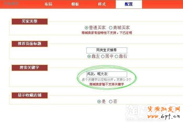 選擇您想要的“布局”,這里最好選每行展示3-4個(gè)寶貝,展示效果好點(diǎn),多了,圖片太小就達(dá)不到預(yù)期的效果;“模板”,您可以根據(jù)自己寶貝特性選擇或是自我感覺來選擇;“樣式”,可以選擇顯示寶貝名稱、掌柜旺旺或是寶貝價(jià)格;“配置”,這里的多選框或可填內(nèi)容的部分盡量寫出內(nèi)容來,俗話說多多益善嘛,特別是“配置”欄里的關(guān)鍵詞選擇您店里當(dāng)前熱銷的寶貝填進(jìn)去,效果會更好呢。