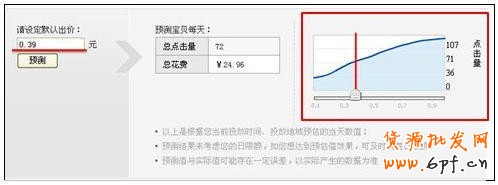 通過拖動右方的紅色游標(biāo)預(yù)測您這個出價可以給你寶貝帶來的整體流量,僅作參考
