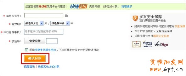 2、填寫頁面上的信息(注:手機號碼為銀行預(yù)留的號碼,收校驗碼),點擊【確認付款】;