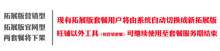 旺鋪拓展版訂購(gòu)費(fèi)用:新拓展版已經(jīng)上線(xiàn),總計(jì)30個(gè)旺鋪功能供您使用,資費(fèi)比原拓展版費(fèi)用直降30%!