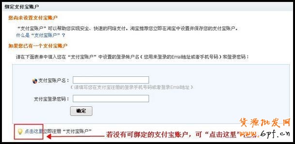 建議您進(jìn)入“我的淘寶”—“賬號(hào)管理”—“支付寶賬戶管理”頁面設(shè)置綁定支付寶賬戶,如果您沒有注冊(cè)支付寶賬戶,可點(diǎn)擊頁面上的“點(diǎn)擊這里”注冊(cè)支付寶賬戶(如圖)。