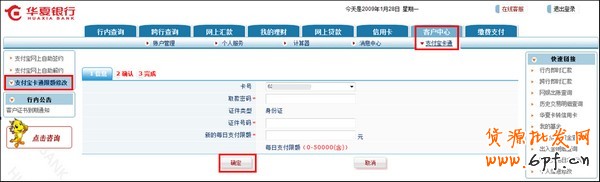 3)在【客戶中心】——【支付寶卡通】下面選擇【支付寶卡通限額修改】,并在輸入各項要素后點擊【確定】,再次確認信息;