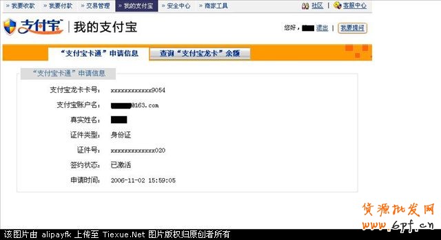 回到家中,登陸我的支付寶(www.alipay.com),激活支付寶龍卡和支付寶帳戶的綁定。