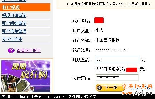 然后,進(jìn)行提現(xiàn)。