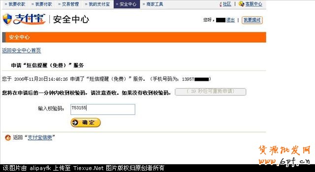 系統(tǒng)會發(fā)一個效驗碼到你的手機,收到以后,回填確認(rèn)。