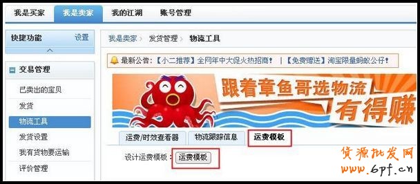 賣(mài)家登錄到“我的淘寶”—“我是賣(mài)家”—“交易管理”—“物流工具”—“運(yùn)費(fèi)模板”中,點(diǎn)擊“運(yùn)費(fèi)模板”—“新增運(yùn)費(fèi)模板”