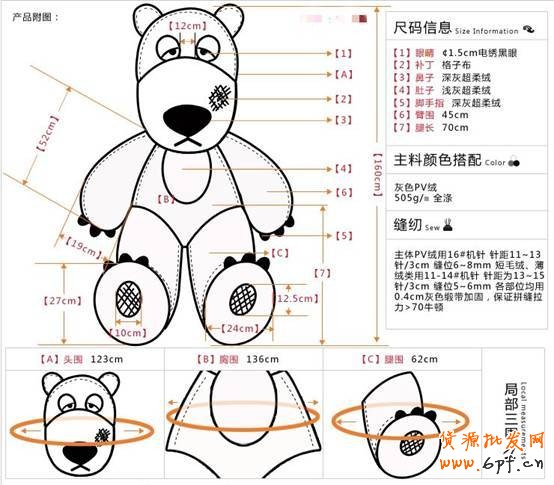 就是這么簡單,但也要提醒各位注意平量測量時千萬不能從玩具熊的耳朵開始測量,最正確的方式是從頭部中間位置開始測量。