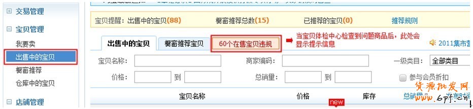 1. 寶貝體檢中心快速入口:http://notice.taobao.com/index.htm。