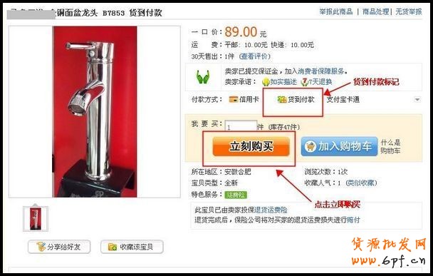 第二步:找到心儀的有貨到付款標(biāo)記的寶貝后,點(diǎn)擊立刻購買。