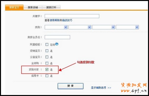 第一步:在淘寶網(wǎng)中尋找支持貨到付款的寶貝,可在高級搜索內(nèi)查詢。