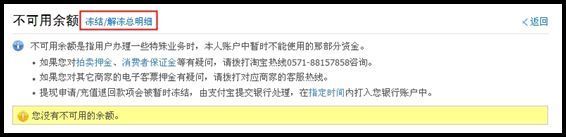 第三步:在“不可用余額”頁面,點(diǎn)擊“凍結(jié)/解凍總明細(xì)”