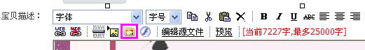 在寶貝介紹部分的工具欄,點(diǎn)擊“插入圖片”