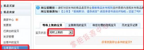 寶貝設(shè)置好后,在倉庫里——所有等待上架的寶貝里找不到寶貝的,這時(shí)寶貝是沒有在倉庫的,在定時(shí)上架里寶貝狀態(tài):選擇定時(shí)上架。