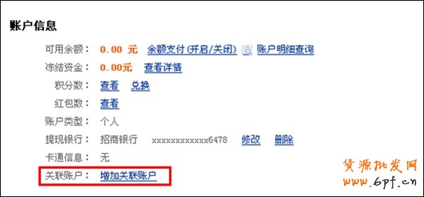 方法二:登錄支付寶賬戶(www.alipay.com)—我的賬戶—賬戶信息,增加關(guān)聯(lián)賬戶,進(jìn)行關(guān)聯(lián)賬戶: