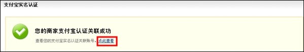 5、提示“您的商家支付寶認(rèn)證關(guān)聯(lián)成功”,點(diǎn)“點(diǎn)此查看”即可以看到您的關(guān)聯(lián)賬戶認(rèn)證信息。