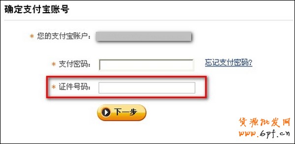 3、輸入本賬戶的支付密碼和營業(yè)執(zhí)照的號碼,點(diǎn)“下一步”;
