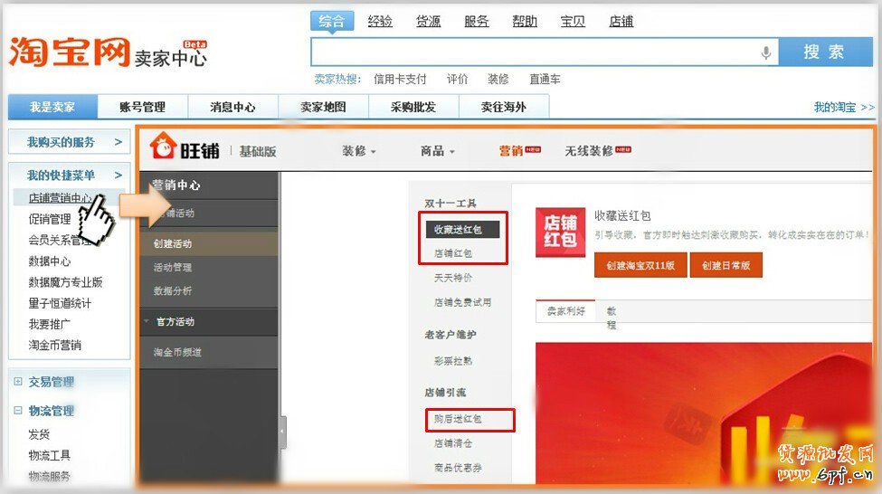 2. 設(shè)置“店鋪紅包”和“購后送紅包”