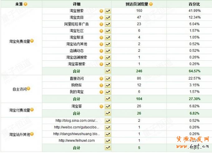 點(diǎn)擊上圖最左邊圖片中的推廣效果,有一個(gè)流量來源構(gòu)成,我們可以通過來源過程來看自己做的推廣哪些有效果,哪些需要強(qiáng)化??聪旅娴膮⒖紙D: