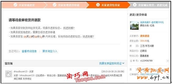 第一步:在淘寶上發(fā)起退貨退款申請(qǐng),查看如何申請(qǐng)退款;