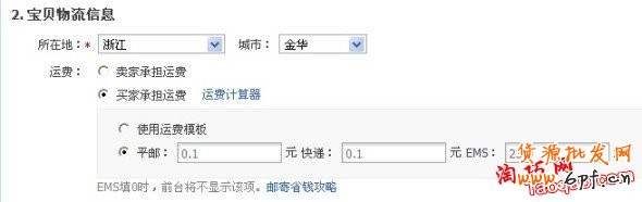 當(dāng)前位置: 貨源批發(fā)網(wǎng) » 網(wǎng)商學(xué)院 » 網(wǎng)店運(yùn)營(yíng) » 物流發(fā)貨 » 如何設(shè)置產(chǎn)品詳情里的郵費(fèi)為0.01元而不是包郵!