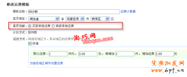 選中【買家承擔(dān)運(yùn)費(fèi)】單選項(xiàng)后,可以在運(yùn)費(fèi)模板上設(shè)置運(yùn)費(fèi)