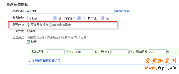 選中【買(mǎi)家承擔(dān)運(yùn)費(fèi)】單選項(xiàng)后,可以在運(yùn)費(fèi)模板上設(shè)置運(yùn)費(fèi)
