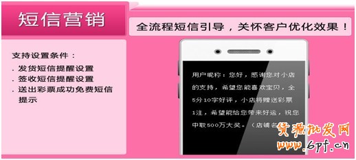 3、短信引導(dǎo),設(shè)置發(fā)貨,或確認(rèn)收貨或簽到后。給買家自動發(fā)送短信提示,讓買家在收到貨后,可以第一時間就了解到活動,并積極參與進來。