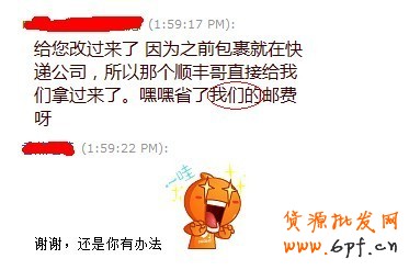 這句話是客人很無奈的時(shí)候客服,主動(dòng)提出來的,先表明這個(gè)問題是因?yàn)槲覀儍蓚€(gè)的錯(cuò),不是只亂往自己身上攘責(zé)任,或是往客人身上推責(zé)任,最后他申請(qǐng)主管是否可以報(bào)銷費(fèi)用,主管說可以,先看看能不能追回快遞 之后在說。 所以就有了這一句事先鋪墊。(讓客人一直覺的,出現(xiàn)的這個(gè)問題,是我和客服一起的敵人,我們?cè)谝黄鹣朕k法)最后是倉庫找到了這個(gè)包裹,還沒給領(lǐng)走,所以沒費(fèi)多少周折就把問題解決了。不過我們?cè)捫g(shù)給客人感覺是大家一起解決了問題,可能這里看的不是很清楚,因?yàn)榱奶煊涗浱L(zhǎng)了,沒辦法一一截下來。就看看結(jié)果吧。自然而然最后客人點(diǎn)名表揚(yáng)了這個(gè)客服: