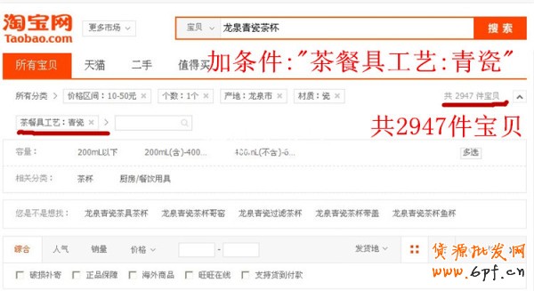 再加條件"茶餐具工藝:青瓷",寶貝已經(jīng)減少到了2947件,展示機(jī)會又大大增強(qiáng)!