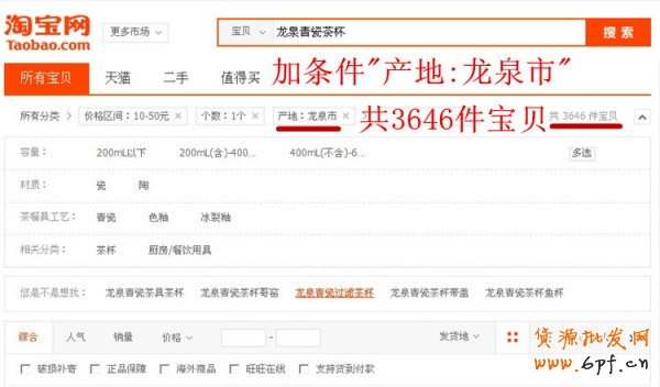 在淘寶首頁,搜索"龍泉青瓷茶杯",共發(fā)現(xiàn)1.42萬件寶貝,在新品沒銷量,排除下架時(shí)間的因素后,幾乎沒什么機(jī)會在首頁暴光!但是增加一點(diǎn)條件,會有意想不到的結(jié)果: