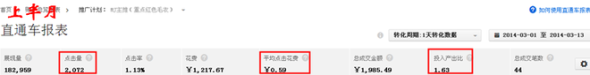 先選擇寶貝列表過去30天的數(shù)據(jù),然后結(jié)合有成交的那部分詞的平均點擊花費,以及要結(jié)合該詞轉(zhuǎn)化ROI與全店直通車轉(zhuǎn)化的ROI相對比,來調(diào)高。調(diào)整幅度一般不高于平均點擊花費的20%,投產(chǎn)比偏高的詞,可以適當(dāng)參考排名需要來調(diào)價。