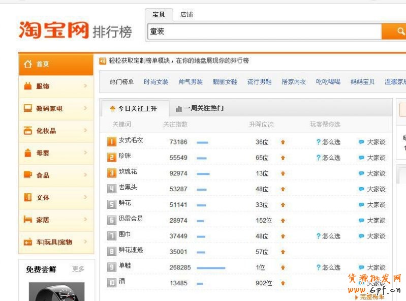 5.淘寶排行榜,可以找到各個(gè)類目下的近期熱搜詞。第一步進(jìn)入淘寶首頁搜索框,點(diǎn)擊“更多”進(jìn)入淘寶排行榜,如下圖所示